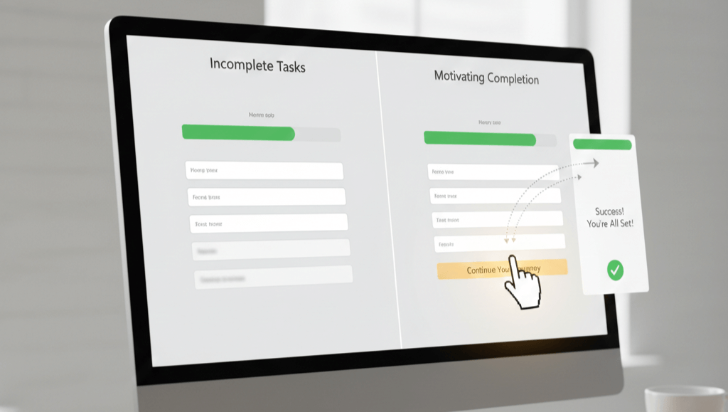 The Zeigarnik effect is the tendency to remember unfinished tasks better than completed ones. In website design, use it by showing progress in multi-step processes, like forms or quizzes. We apply this to keep users motivated.